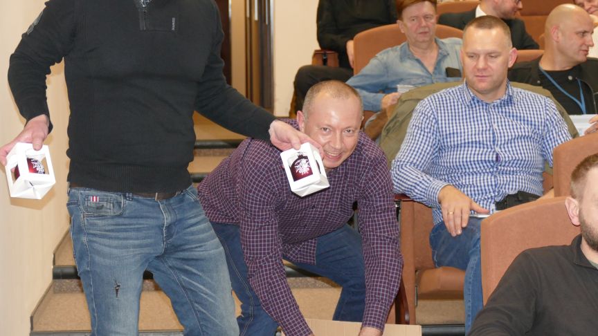 Na zakończenie zebrania prezes ppłk Mieczysław Hucał złożył wszystkim życzenia świąteczno-noworoczne oraz wręczył oddziałowe bombki choinkowe, tym razem bordowe. Pierwsze - chabrowe zostały wręczone trzy lata temu.