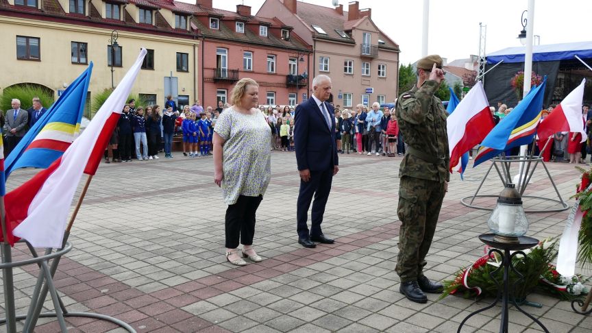 W trakcie uroczystości pod tablicą pamiątkową na serockim Ratuszu zostały złożone wiązanki kwiatów i zapłonęły okolicznościowe znicze.
